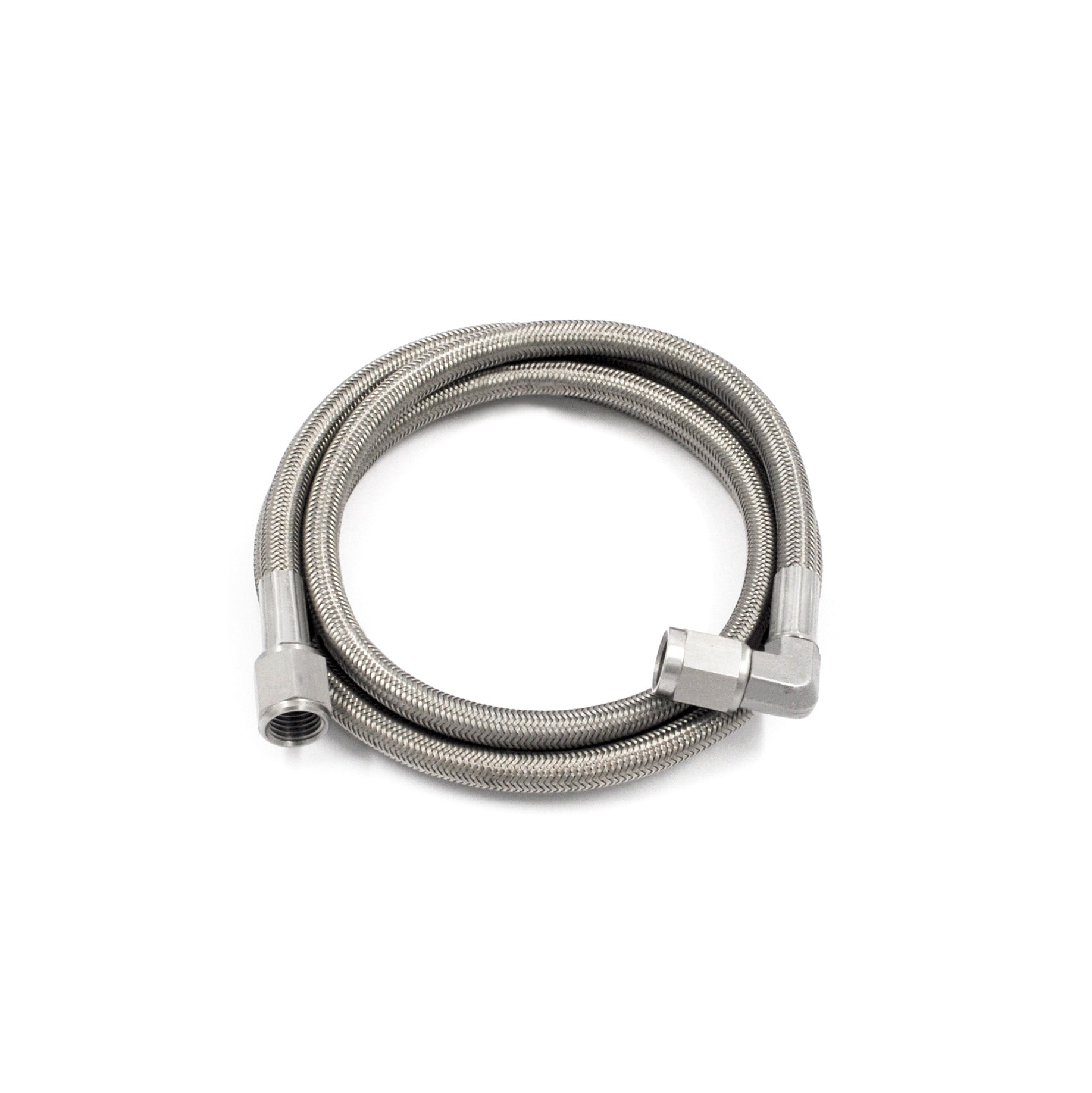 Braided Hose with pre-crimped stainless steel hose ends.