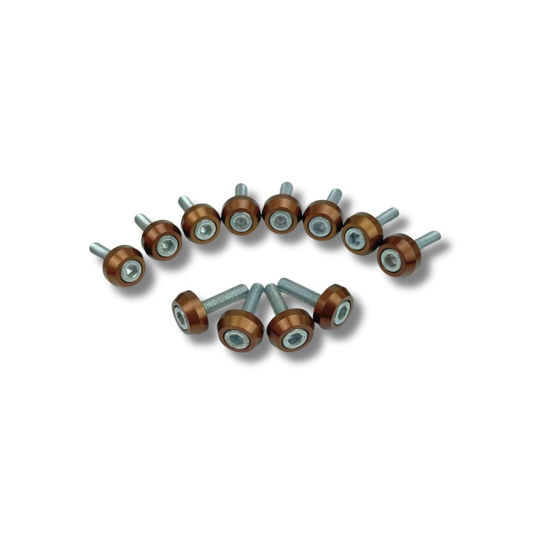 Designed to be a direct fit to your Toyota 7MGTE engine, our PRP Billet Rocker Cover Dress-up Kits cam cover bolts are the perfect replacement for your original rocker cover bolts. Simply remove the original bolt and tired-looking rubber packed washer and replace it with our Billet 6000 series nicely anodized shanked dress up washer and bolt.